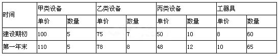 5某工程在建設(shè)期初預(yù)計(jì)和建設(shè)期第一年末實(shí)際發(fā)生的設(shè)備、工器具購置情況如下表所示。與建設(shè)期初相比,第一年末的設(shè)備、工器具價(jià)格指數(shù)為( )。