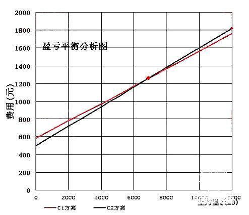 求得盈虧平衡點:Q=6896.55m3(盈虧平衡圖如下)
