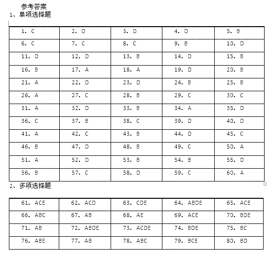 2012年注冊(cè)造價(jià)工程師《建設(shè)工程技術(shù)與計(jì)量(土建)》真題答案