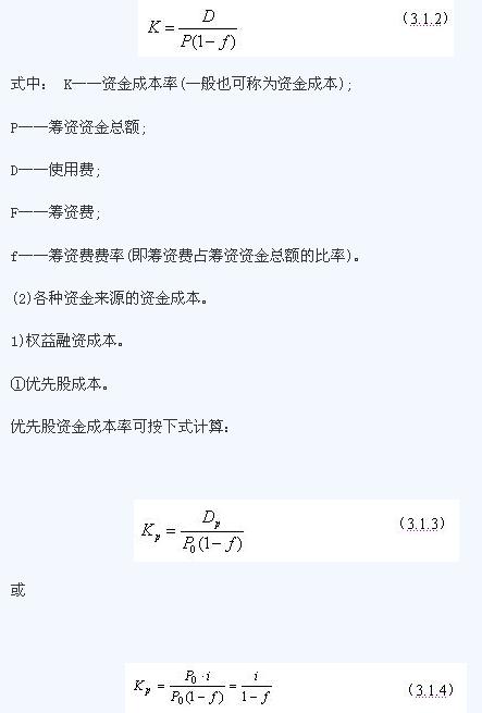 (1)資金成本計算的一般形式。資金成本可用絕對數(shù)表示,也可用相對數(shù)表示。為便于分析比較,資金成本一般用相對數(shù)表示,稱之為資金成本率,其一般計算公式為: