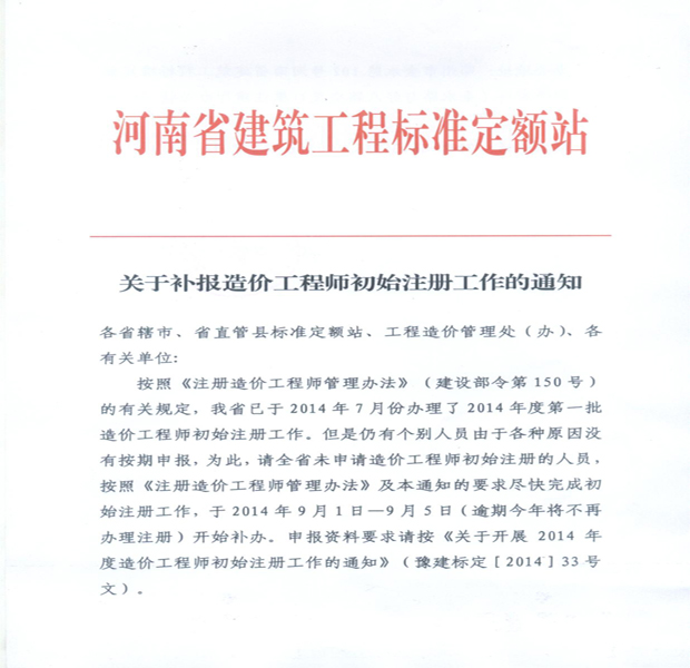 摘要 洛陽造價信息網:補報造價工程師初始注冊工作通知