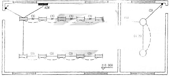 2、管路均為鍍鋅鋼管Φ15沿墻、樓板暗配,頂管敷管標(biāo)高4.50m,管內(nèi)穿絕緣導(dǎo)線ZRBV-500 2.5M