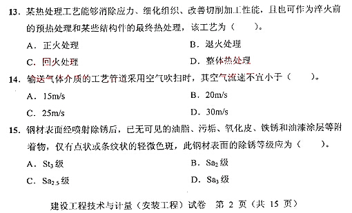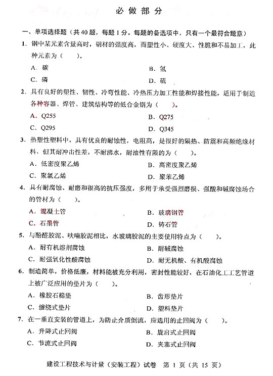 2007年造價(jià)工程師真題-安裝工程單選一(必做)