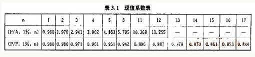 則,基礎(chǔ)工程每月工程款的現(xiàn)值為:。
