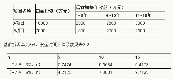 2.不考慮建設期的影響,分別列式計算A、B兩個項目總收益的凈現(xiàn)值。