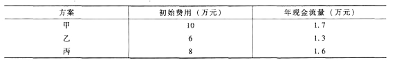 ①甲、乙、丙:因為初始可利用資本為18萬元,三種方案的初始費用總和超過了18萬元,