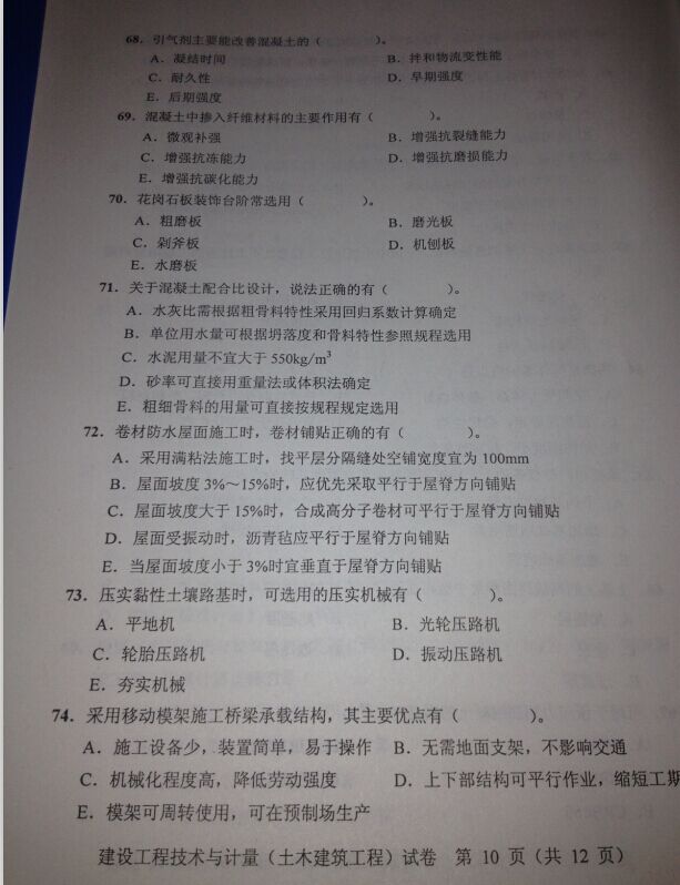 2014年造價工程師《土建工程》試題(多選)