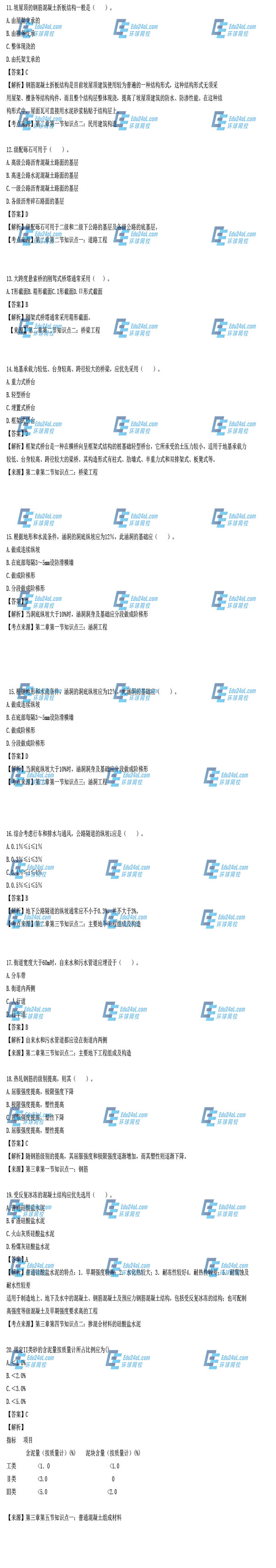 2014年造價工程師《土建工程》單選題(11-20)
