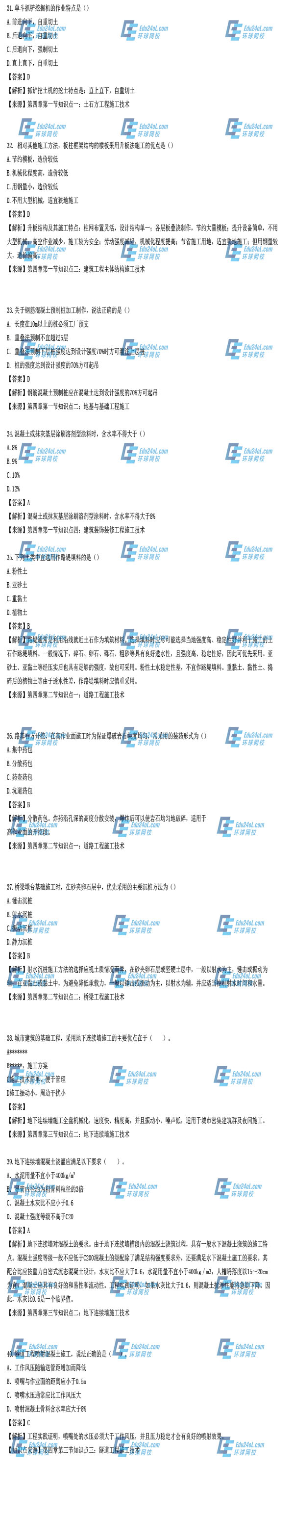 2014年造價(jià)工程師《土建工程》單選題(21-40)