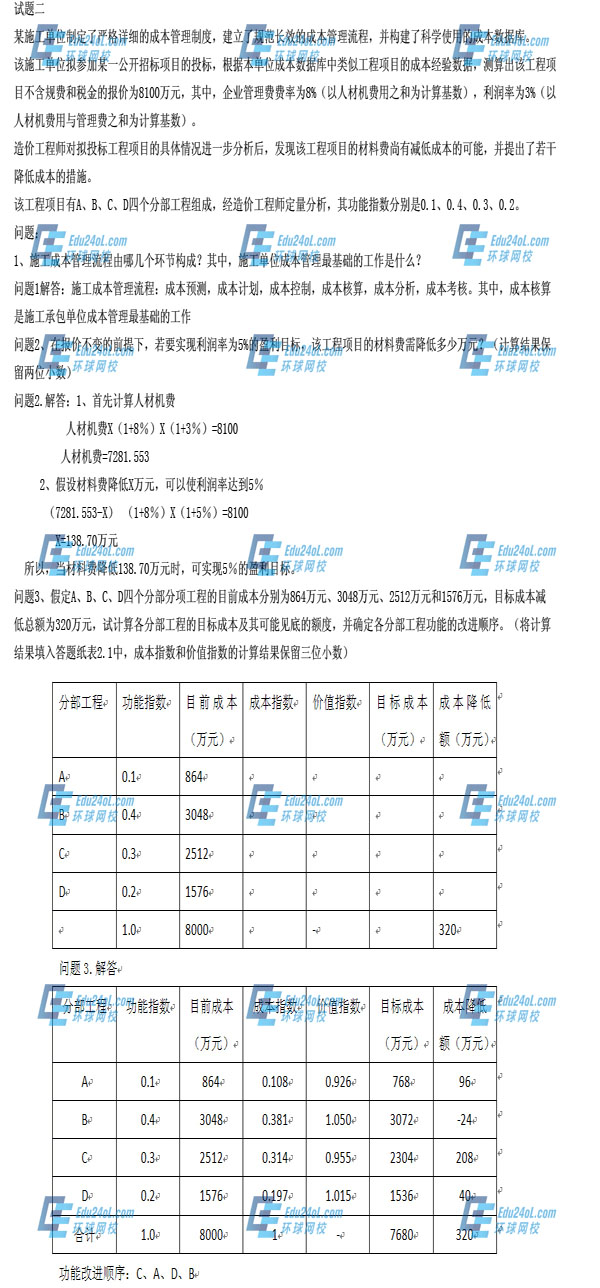 2014造價(jià)師《造價(jià)案例分析》考試試題及答案第二題,更多真題及答案敬請(qǐng)關(guān)注環(huán)球網(wǎng)校!