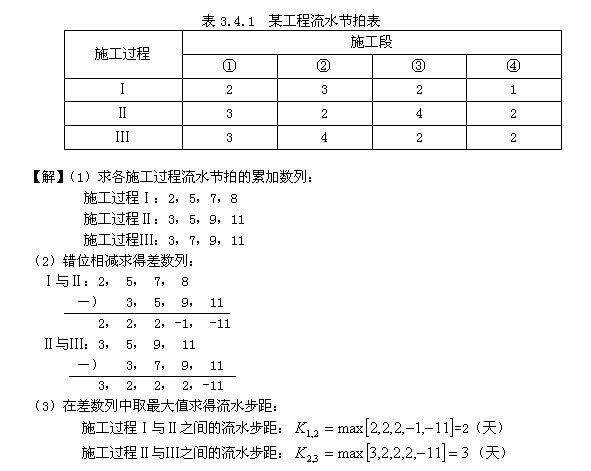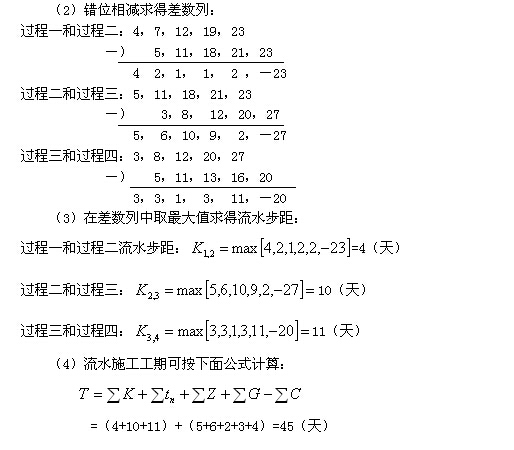 (3)在差數(shù)列中取最大值,即為這兩個(gè)相鄰施工過程的流水步距。