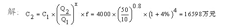 【例】2004年已建成年產(chǎn)10萬(wàn)噸的某鋼廠,其投資額為4000萬(wàn)元,2008年擬建生產(chǎn)50萬(wàn)噸的鋼廠項(xiàng)目,建設(shè)期2年。自2004年至2008年每年平均造價(jià)指數(shù)遞增4%,估算擬建鋼廠的靜態(tài)投資額所需靜態(tài)投資為多少?X=0.8