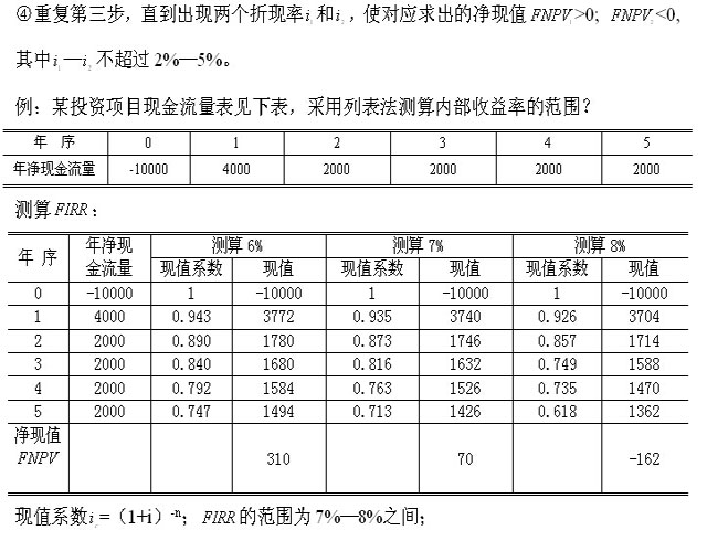 內(nèi)部收益率:指項(xiàng)目在整個(gè)計(jì)算期內(nèi)各年凈現(xiàn)金流量的現(xiàn)值之和等于零時(shí)的折現(xiàn)率,即=0時(shí)的折現(xiàn)率。