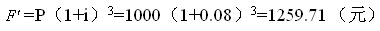1)單利:F= P(1+i.n)=1000(1+0.08×3)=1240(元)