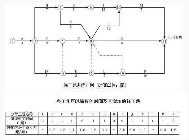 1、開工1周后,建設(shè)單位要求將總工期縮短2周,幫請監(jiān)理單位幫助擬定一個(gè)合理趕工方案以便與施工單位洽商。請問如何調(diào)整計(jì)劃才能既實(shí)現(xiàn)建設(shè)單位的要求又能使支付施工單位的趕工費(fèi)用最少?說明步驟和理由。