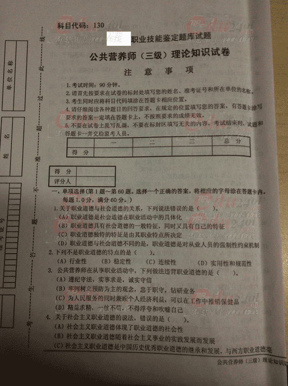2012年11月公共營養(yǎng)師考試三級(jí)理論知識(shí)考試已經(jīng)結(jié)束,環(huán)球網(wǎng)校在第一時(shí)間為考生及學(xué)員整理了真題,網(wǎng)校預(yù)祝學(xué)員們能夠取得好成績。