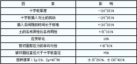 影響十字板剪切試驗的因素很多,各影響因素對Cu的影響見下表。 十字板剪切試驗影響因素