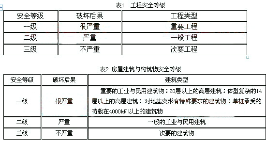 工程的安全等級(jí),是根據(jù)由于工程巖土體或結(jié)構(gòu)失穩(wěn)破壞,導(dǎo)致建筑物破壞而造成生命財(cái)產(chǎn)損失、社會(huì)影響及修復(fù)可能性等后果的嚴(yán)重性來劃分的。根據(jù)國(guó)家標(biāo)準(zhǔn)《建筑結(jié)構(gòu)設(shè)計(jì)統(tǒng)一標(biāo)準(zhǔn)》GBJ68-84的規(guī)定,將工程結(jié)構(gòu)劃分為三個(gè)安全等級(jí),《規(guī)范》與之相應(yīng),也將工程安全等級(jí)劃分為三級(jí)。