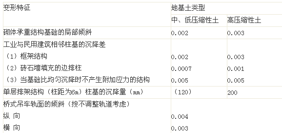 必須指出,地基的變形計(jì)算,目前還比較粗略。至于地基變形的允許值則更難準(zhǔn)確確定。我國(guó)規(guī)范根據(jù)對(duì)各類建筑物沉降觀測(cè)資料的分析綜合和對(duì)某些結(jié)構(gòu)附加內(nèi)力的計(jì)算,以及參考一些國(guó)外資料,提出了地基變形的允許值(表7-18)。對(duì)表中未包括的其它建筑物的地基變形允許值,可根據(jù)上部結(jié)構(gòu)對(duì)地基變形的適應(yīng)能力和使用上的要求來(lái)確定。
