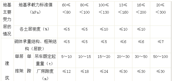 注:①地基主要受力層系指條形基礎(chǔ)底面下深度為3b(b為基礎(chǔ)底面寬度),獨立基礎(chǔ)下為1.5b,厚度均不小于5m的范圍(二層以下的民用建筑于除外)。