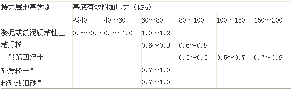 注:*適用于上海地區(qū),相近軟土地區(qū)可參照使用。
