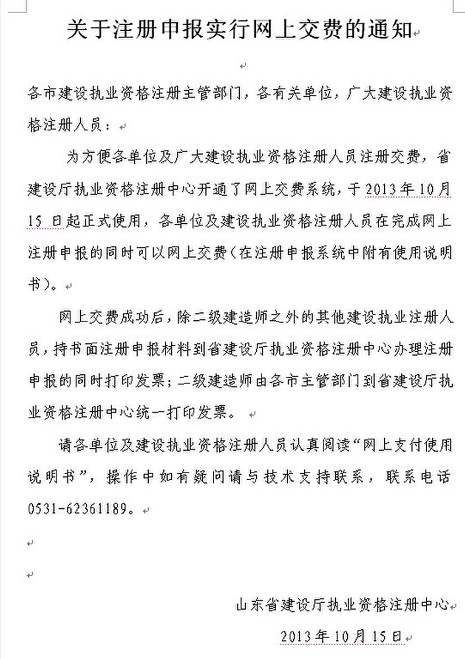 山東巖土師考試注冊(cè)申報(bào)實(shí)行網(wǎng)上交費(fèi)通知