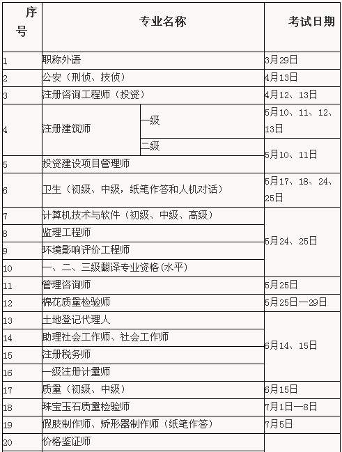 各項(xiàng)考試的報(bào)名日期及未列入本年度考試工作計(jì)劃的其他專業(yè)的報(bào)名和考試日期,待確定后另行通知,請(qǐng)各單位及時(shí)協(xié)助做好考試的有關(guān)組織實(shí)施工作。
