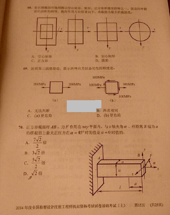 摘要 2014年巖土工程師公共基礎(chǔ)考試真題