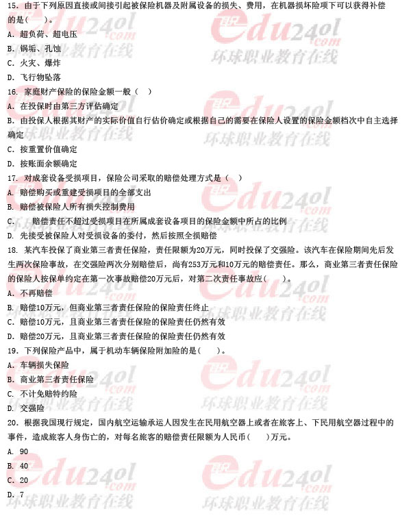 2011年經(jīng)濟(jì)師考試《中級(jí)保險(xiǎn)》真題及答案(3)