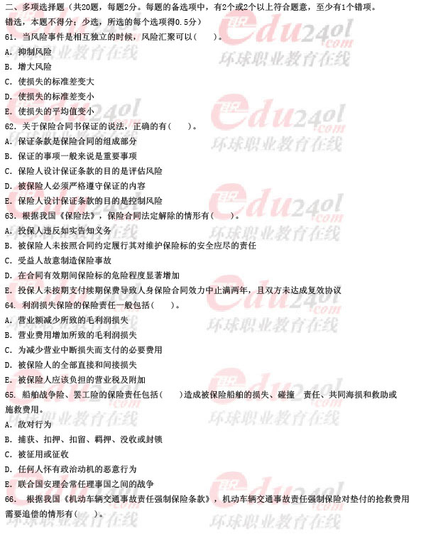 2011年經(jīng)濟師考試《中級保險》真題及答案(4)