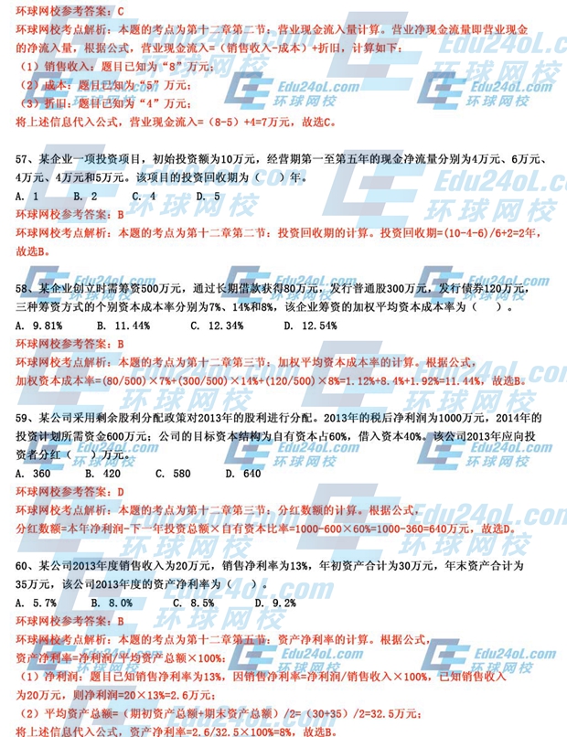 56、某公司因業(yè)務(wù)發(fā)展需要購(gòu)入一套設(shè)備,該設(shè)備價(jià)值20萬元,使用壽命為5年,每年折舊為4萬元。設(shè)備投入使用后,每年銷售收入為8萬元,每年成本為5萬元,該投資每年?duì)I業(yè)凈現(xiàn)金流量為( )萬元。