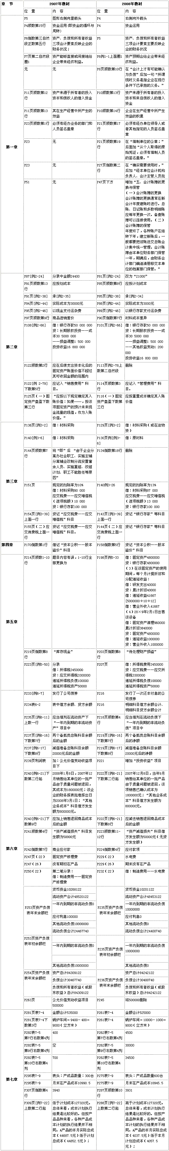 初級(jí)會(huì)計(jì)實(shí)務(wù)2007、2008教材變化對(duì)比