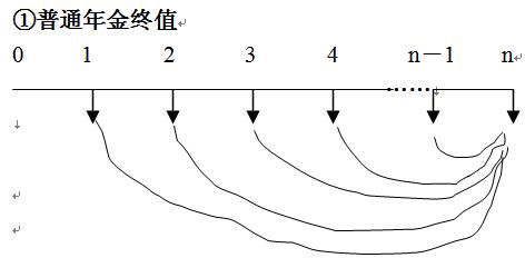 普通年金是指從第一期起,在一定時(shí)期內(nèi)每期期末等額收付的系列款項(xiàng),又稱為后付年金。其形式如下圖: