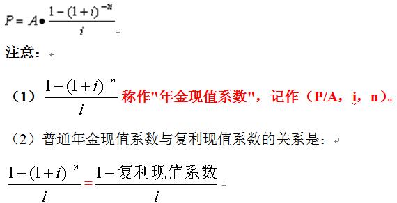 P=A×(1+i)-1+A×(1+i)-2+A×(1+i)-3+A×(1+i)-4+……+A×(1+i)-n (1)