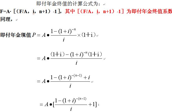 P=A·[(P/A,i,n-1)+1],其中[(P/A,i,n-1)+1]為即付年金現(xiàn)值系數(shù)