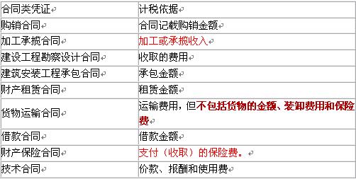 1、合同類:以憑證所載金額作為計(jì)稅依據(jù)。