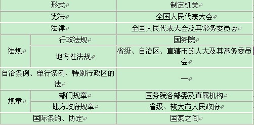 1、法的形式。我國法的形式主要包括以下幾種形式: