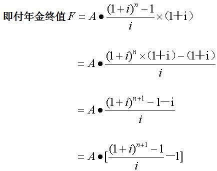 F=A?[(F/A,i,n+1)-1],其中[(F/A,i,n+1)-1]為即付年金終值系數(shù)