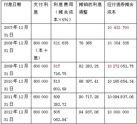 【例6】2007年12月31日,甲公司經(jīng)批準(zhǔn)發(fā)行5年期一次還本、分期付息的公司債券10 000 000元,債券利息在每年12月31日支付,票面利率為年利率6%。假定債券發(fā)行時(shí)的市場(chǎng)利率為5%。