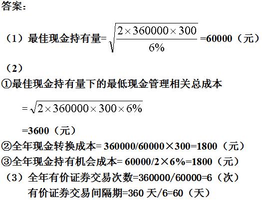 (3)計(jì)算最佳現(xiàn)金持有量下的全年有價(jià)證券交易次數(shù)和有價(jià)證券交易間隔期。