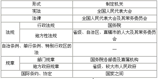 法的形式及制定機關表格