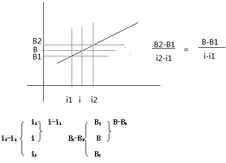 結論: (i-i1)/(i2-i1) =(B-B1)/(B2-B1)