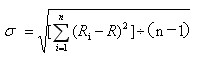 【補充】當不知道或者很難估計未來收益率發(fā)生的概率以及未來收益率的可能值時,可以利用收益率的歷史數(shù)據(jù)去近似地估算預期收益率及其標準差。標準差可用下列公式進行估算: ![]() 其中:Ri表示數(shù)據(jù)樣本中各期的收益率的歷史數(shù)據(jù);R是各歷史數(shù)據(jù)的算術平均值;n表示樣本中歷史數(shù)據(jù)的個數(shù)。 |