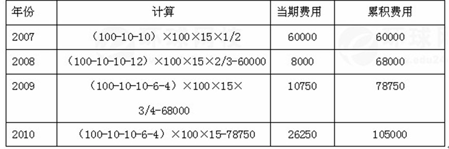 【答案解析】2010年末A公司應(yīng)確認(rèn)當(dāng)期管理費(fèi)用=15×100×200×[(85%×2/3)-(80%×1/3)]=90000元。