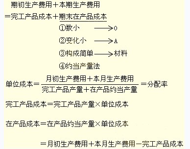 月末在產品只計算其所耗直接材料成本,不計算直接人工等加工成本。適用于月末在產品數量較多,但各月在產品數量變化也較大,直接材料成本在生產成本中所占比重較大且材料在生產開始時一次就全部投入的產品。