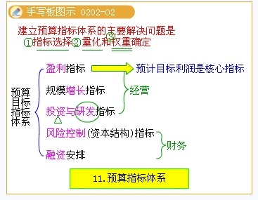 從內(nèi)容上說,預算目標指標體系應包括盈利指標、規(guī)模增長指標、投資與研發(fā)指標、風險控制(資本結(jié)構(gòu))指標、融資安排等。