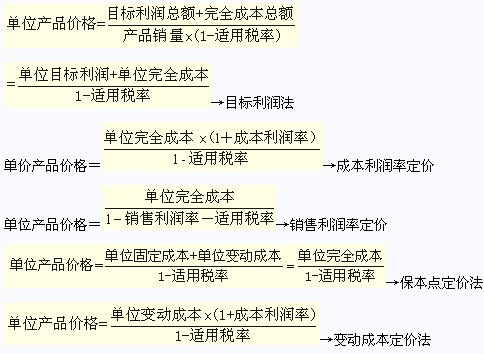 目標(biāo)利潤總額=銷售收入×(1-適用稅率)-成本總額單位目標(biāo)利潤×銷售量=單位產(chǎn)品價(jià)格×產(chǎn)品銷量×(1-適用稅率)-單位成本×產(chǎn)品銷量其中:成本可以是變動(dòng)成本,也可以是制造成本(直接材料+直接人工+制造費(fèi)用)或完全成本(制造成本+期間費(fèi)用)。