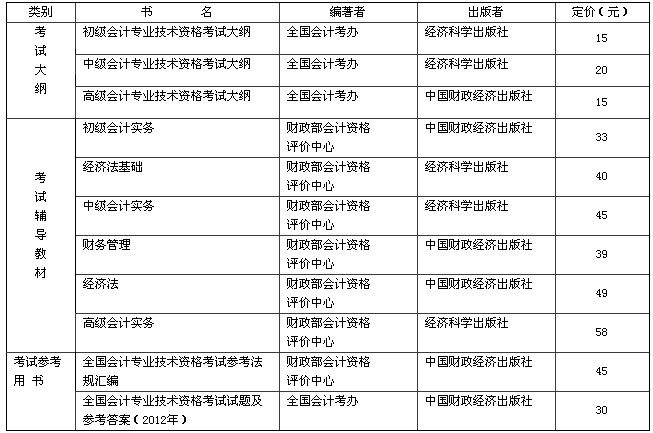 2013年全國會(huì)計(jì)職稱考試用書書目
