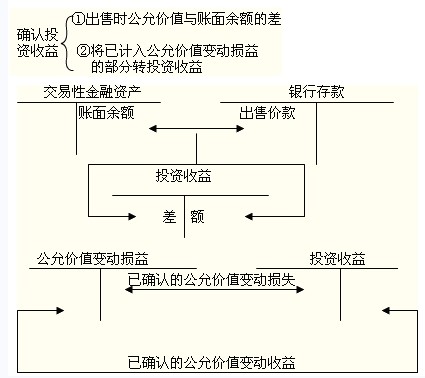 出售交易性金融資產(chǎn)時(shí),應(yīng)將出售時(shí)的公允價(jià)值與其賬面余額之間的差額確認(rèn)為當(dāng)期投資收益;同時(shí)調(diào)整公允價(jià)值變動(dòng)損益。