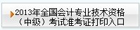 天津2013年中級會計職稱考試準考證打印入口
